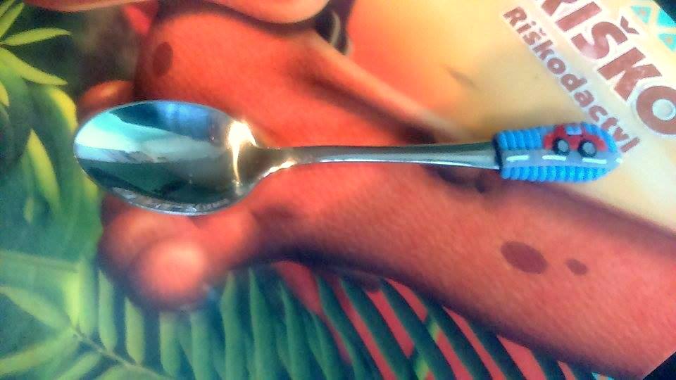 Myslela som si že keď mu kúpime detský príbor bude rád, ale omyl, máme veľký problém, všetko chce jesť len malou lyžičkou , lebo on chce len autičko @mimusha3 prosím urobíš mi, polievkovú lyžicu s týmto istým vzorom ?