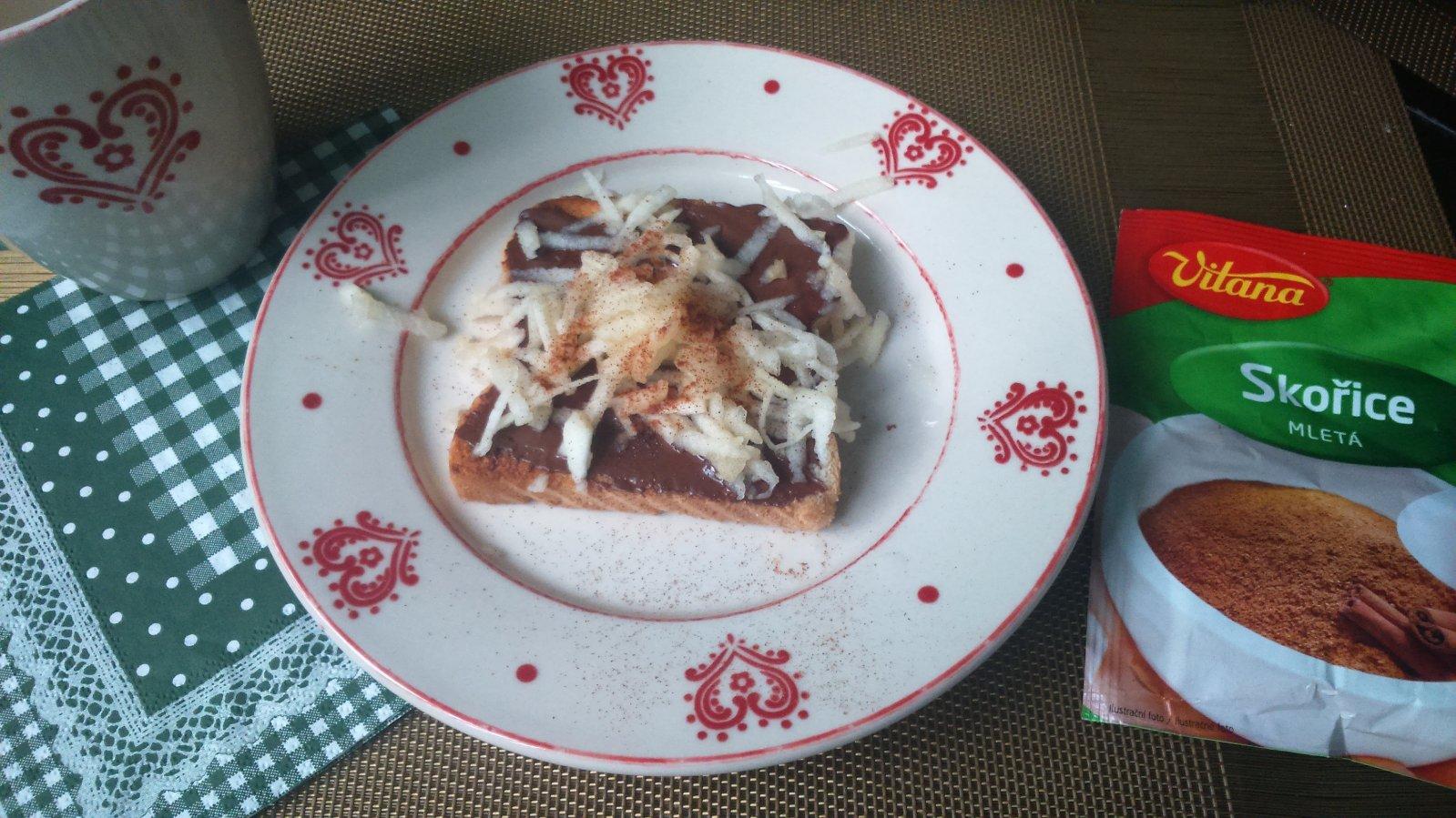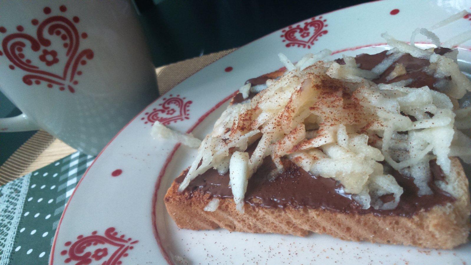 niečo rýchle .......toast ,postrúhané jablko ,škorica a kakavko k tomu🙂 dobrú chuť