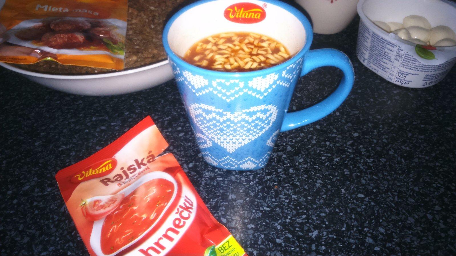 paradajkovú polievku v šálke som asi naposledy jedla v robote ,poznáte to keď nemáte čas sa ani najesť a ako matka, aby som bola čím skôr doma a niečo dala do seba za celý deň bola sáčková polievka 🙂