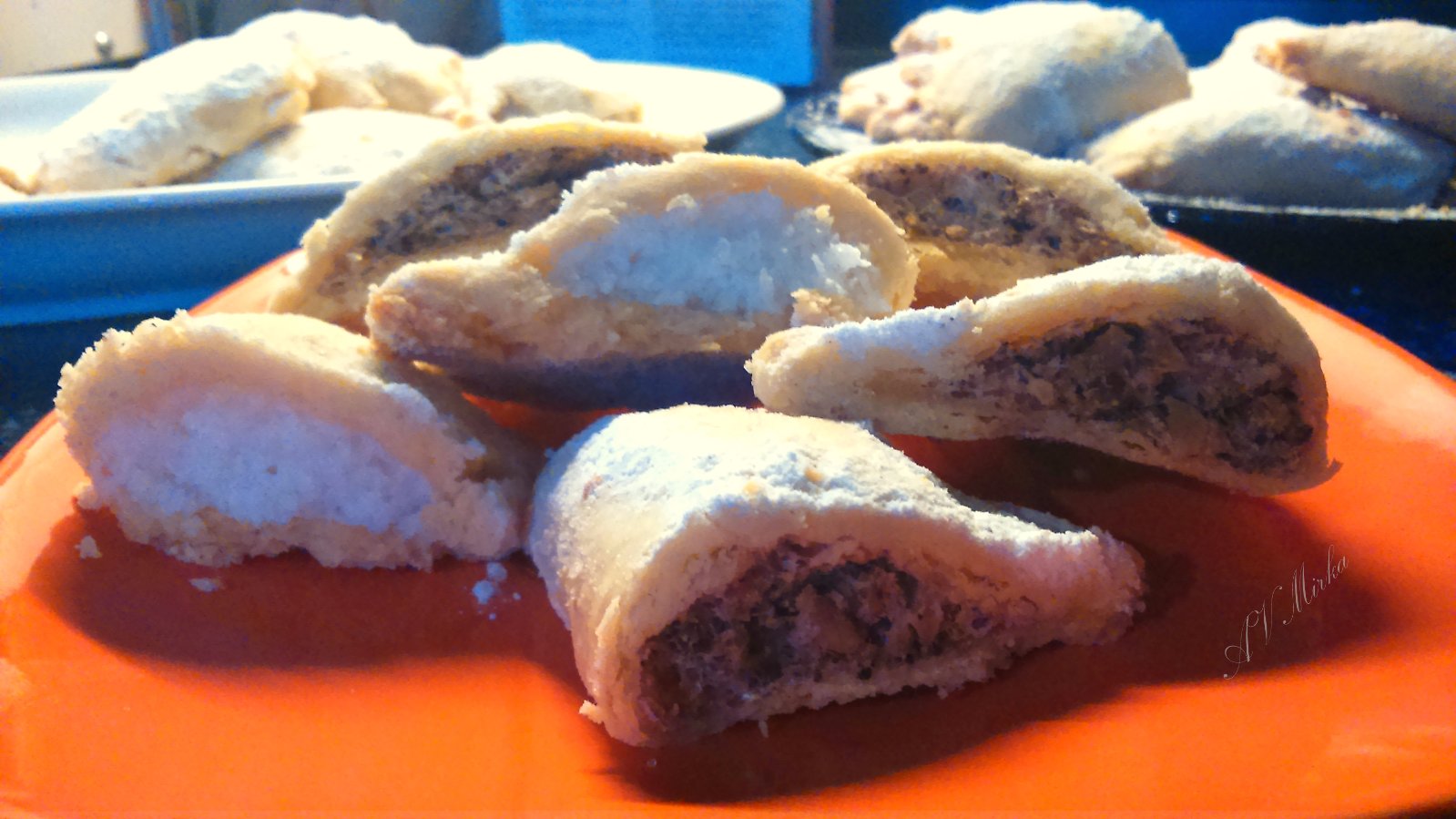 Obaĺujeme ešte teplé v práškovom cukre alebo vychladnuté posypeme.