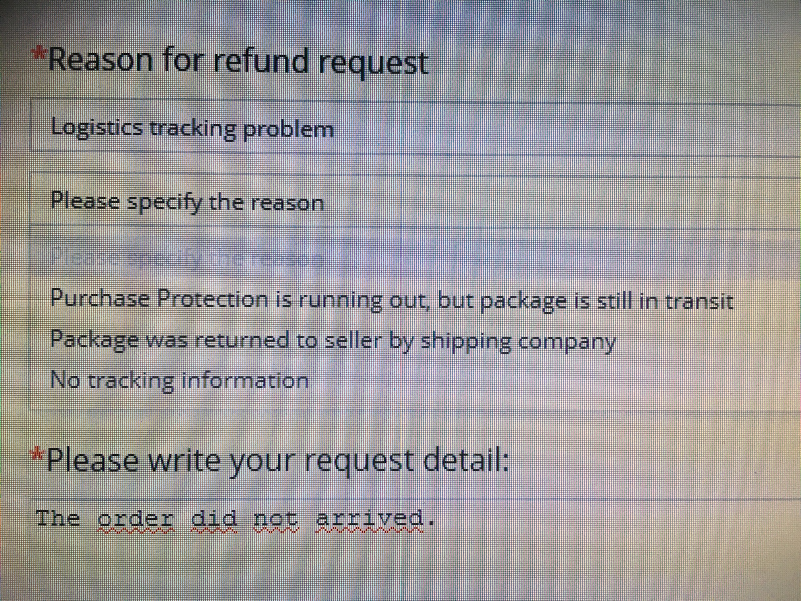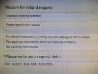 Dievcence, ked vam z ali neprisiel tovar, co date do kolonky reason for refund request? Bud