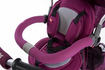 - otočné sedadlo s regulovateľnou opierkou chrbta (je možné ju nastaviť v/proti smere jazdy) tak, aby dieťa mohlo mať očný kontakt s rodičom, riadiacim trojkolku,