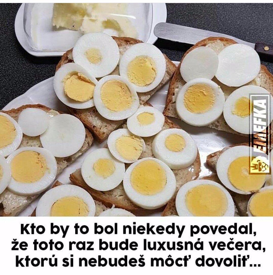 asi budem za blbú len som to celkom nepochopila. Obyčajný chlieb s vareným vajíčkom. No čo je smiešne na tom, že pre niekoho je to ozaj luxusná večera a tých ľudí veru nie je málo ? Niekto je rád ked má aj len ten chlieb. 😕☹