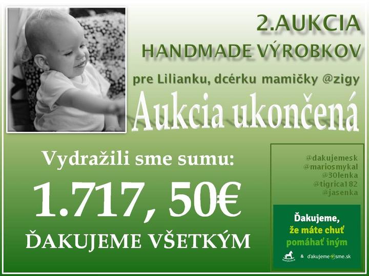Úspešne sme 2.Aukciu ukončili a dúfame, že tak ako nás výsledná suma potešila, poteší aj Vás, ale úplne najviac poteší Lilianku a jej maminku @zigy