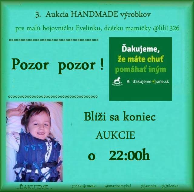 #aukcia3 pre malú bojovníčku Evelinku. Dražíme v skupine https://www.modrykonik.sk/group/7813/detail/ Ďakujeme