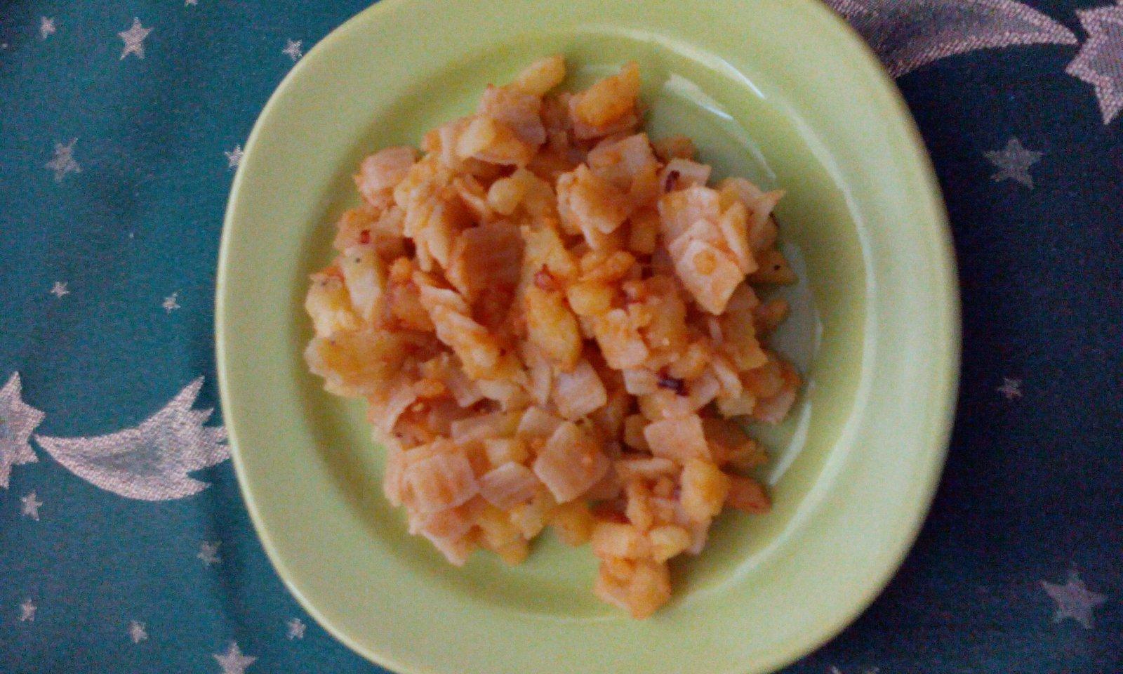 zemiaky uvarené v šupke, fliačky, sol,mčk, cibula,olej ,mčp