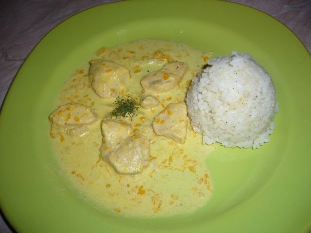 kuracie prsia na mandarinkách ,kari s ryžou