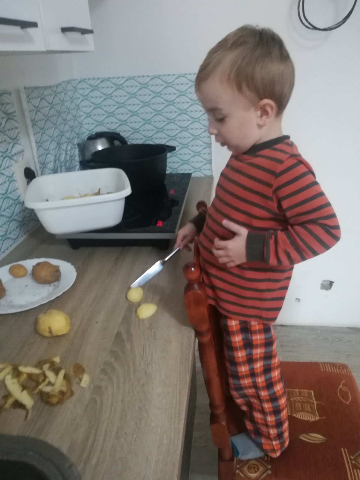 Pri krajani zemiackov Vám synček pomôže veľmi rád, dáte mu príborovy nožík a sup do toho