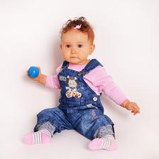 Rifličky nás milo prekvapili. Výborne sedia /vzadu pás sťahuje nenásilná gumička aby neboli voľné a nefúkalo do vnútra/, Sárinke sa v nich pohodlne chodilo aj po štyroch, výborne je vyriešený spodok nohavíc - patenty sú hlavne v chladnom počasí na nezaplatenie a výborne /ľahúčko/ sa nastavujú aj traky. Rifličky určené ako pre dievčatá, tak aj pre chalanov - Unisex. Vpredu naše prasiatko potešil Levík - 3D a vzadu nad vreckom tiež milá výšivka.)