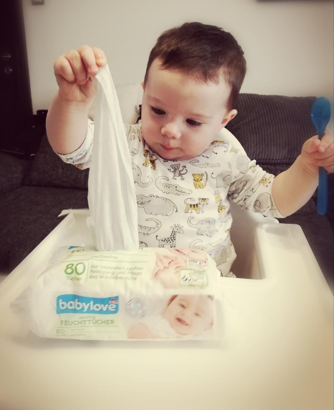 Bonus na záver: na čo sú najlepšie vlhčené utierky babylove? No predsa na to, aby ich deti jednu po druhej vyťahovali z balíčka až do zbláznenia alebo vyprázdnenia balenia. Ale iba medzi nami, nevadilo mi to, celých 10 minút som nevedela, že mám dieťa :D Teda toto druhé dieťa, to prvorodené o sebe dávalo vedieť naďalej 🙂