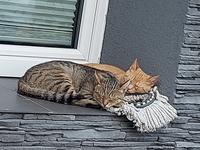 Micka na stole a cierna ozaj vyzeraju ako po nejakej party 😄 Tie macacie pozy 🥰