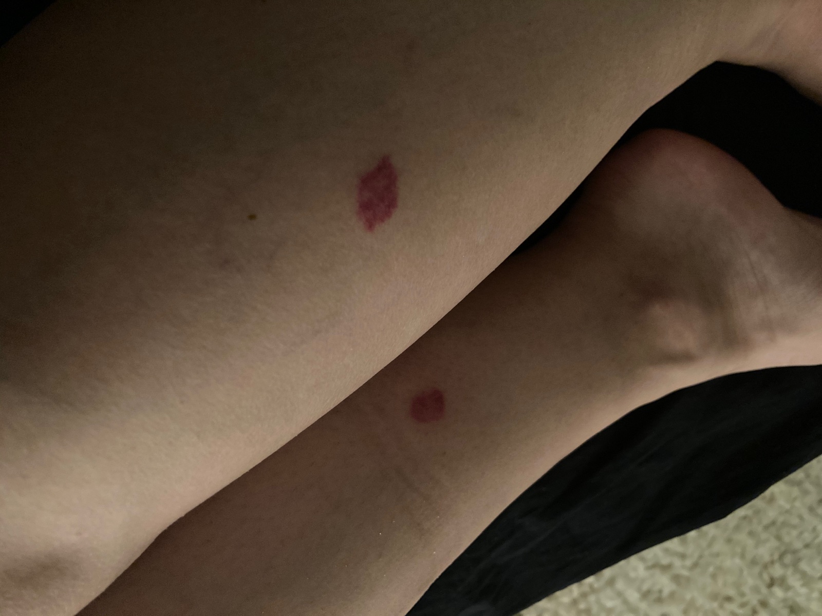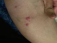 Su to stipance, to je evidentne podla stredu tych lezii, vidno tam narusenie povrchu, kde sa to nieco zahryzlo. Ale evidentne je tam nejaka vyraznejsia reakcia s krvacanim.
