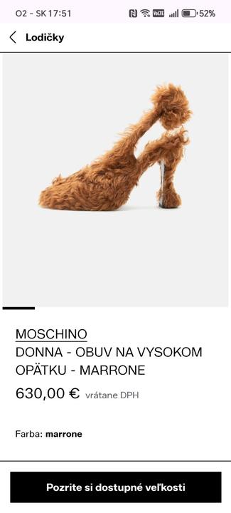ano, ako kazda zena na MK, a celkovy slovensky priemer, aj ja bezne nosim Moschino podpatky z fejkovej cincily za niekolko stovak. Su vyborne, vzala som si jedny do obyvacky, nech sa na ten gyc chytaju guce prachu, nech uz potom ja nemusim; a druhe som vzala ked pojdem do Lidlu na akcie, nech v otazke nevkusu neputaju pozornost len nasi spoluobcania. wtf to je diskusna otazka toto. Ako sa toto moze niekomu pacit, sak to je jak polepeny odpad z odtoku vo vani.
