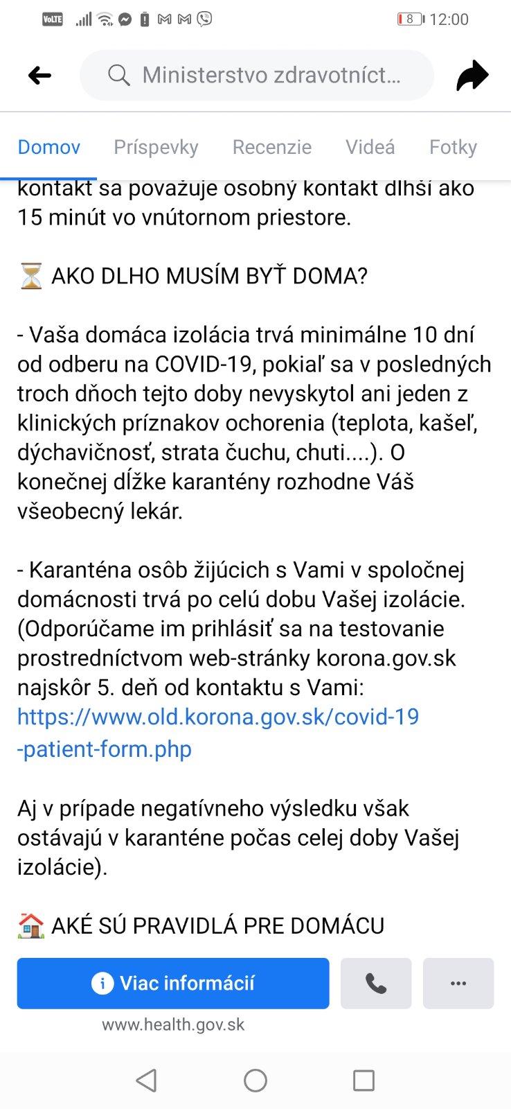 Ak na test nepôjdeme, tvoj manžel má karanténu 10dni ale vy ostatní 15 dní.