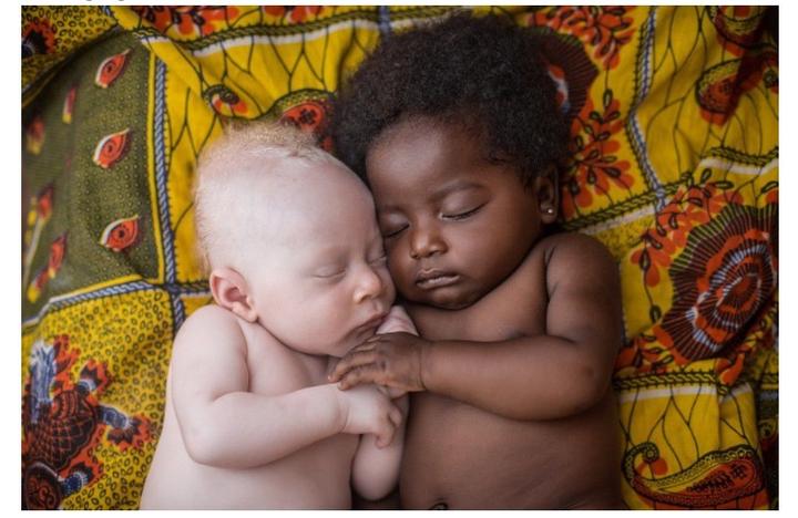 Bábätko s albinizmom ležiace vedľa svojej sesternice ❤️