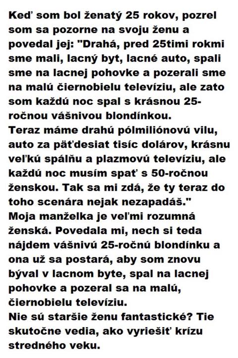 Včera som so svojimi kamarátkami vyrazila na večierok. Priateľovi som povedala, že sa vrátim o polnoci. "Sľubujem ti, miláčik, že sa nevrátim ani o minútu neskôr!" vyhlásila som a vyrazila. Ale večierok bol fantastický. Drinky, tančeky, znovu drinky a znovu tančeky, ešte viac drinkov...bolo to tak skvelé, že som zabudla na čas!...Keď som sa vrátila domov, boli tri hodiny ráno ! Vchádzam do bytu, ako myška otváram dvere a vtom počujem tú sprostú kukučku v hodinách, ako kuká trikrát ! Keď som si uvedomila, že priateľ sa pri tom kukaní môže prebudiť, zakukala som sama ešte deväťkrát...Bola som na seba hrdá, že aj keď som ožratá ako delo, dostala som taký dobrý nápad a podarilo sa mi vyhnúť nepríjemnosti s priateľom...! Rýchlo som si ľahla a zaspávala s myšlienkou na to, ako som inteligentná.