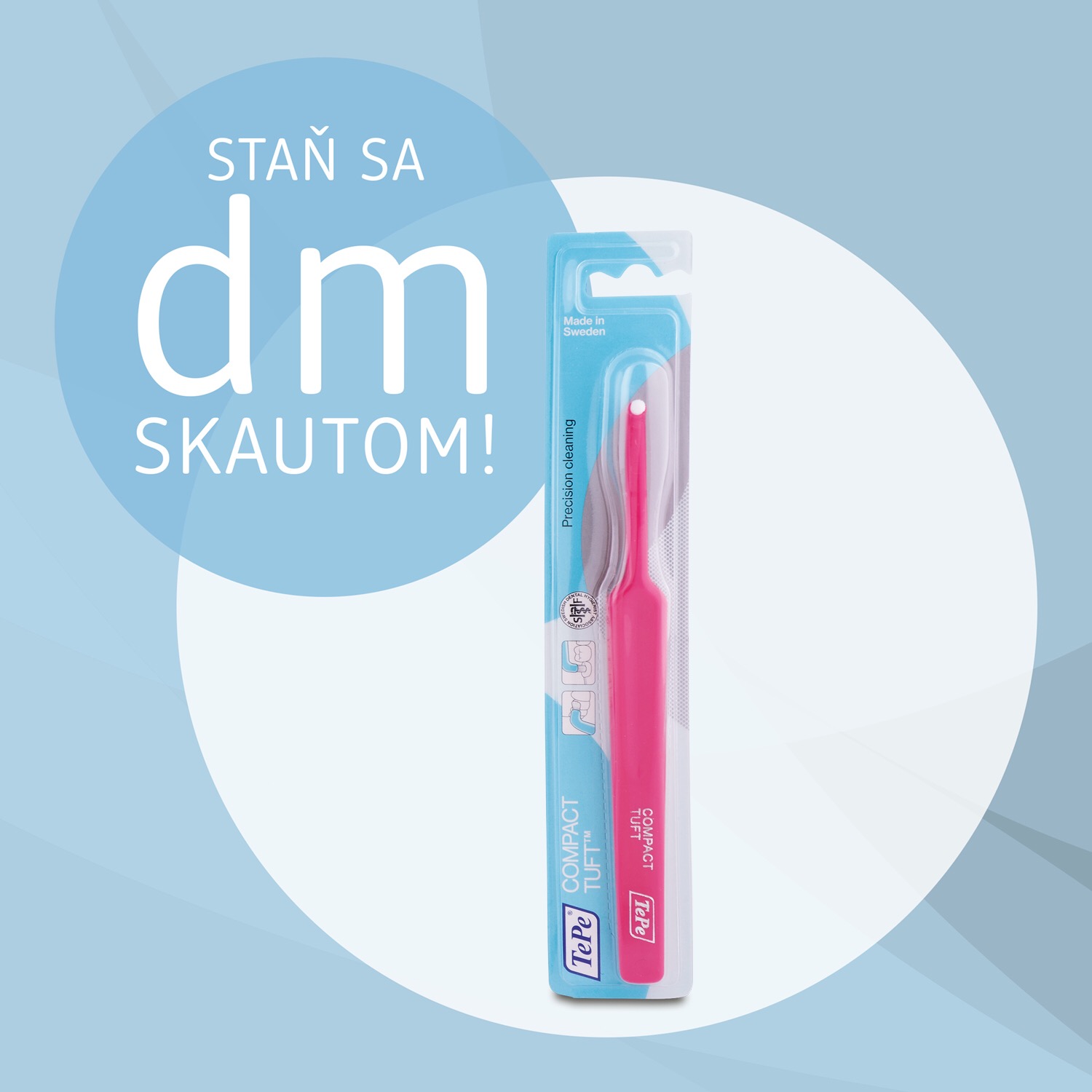 Dnes hľadá dm 500 dm skautov, ktorí by radi vyskúšali NOVINKU TePe jednozväzkovú zubnú kefku Compact Tuft! 💙Dôkladne vyčistí aj ťažko dostupné miesta.😮 Je mäkká s jemnými X-soft vláknami a krátkym guľatým zástrihom. Určená pre čistenie každého jednotlivého zuba jemným krúživým pohybom s dôrazom na čistenie línie ďasien. Ak ju chcete vyskúšať, prihlásiť sa môžete tu👉 www.mojadm.sk/dmskaut-tepe-compact-tuft . Na prihlásenie máte 24 hodín! 😉