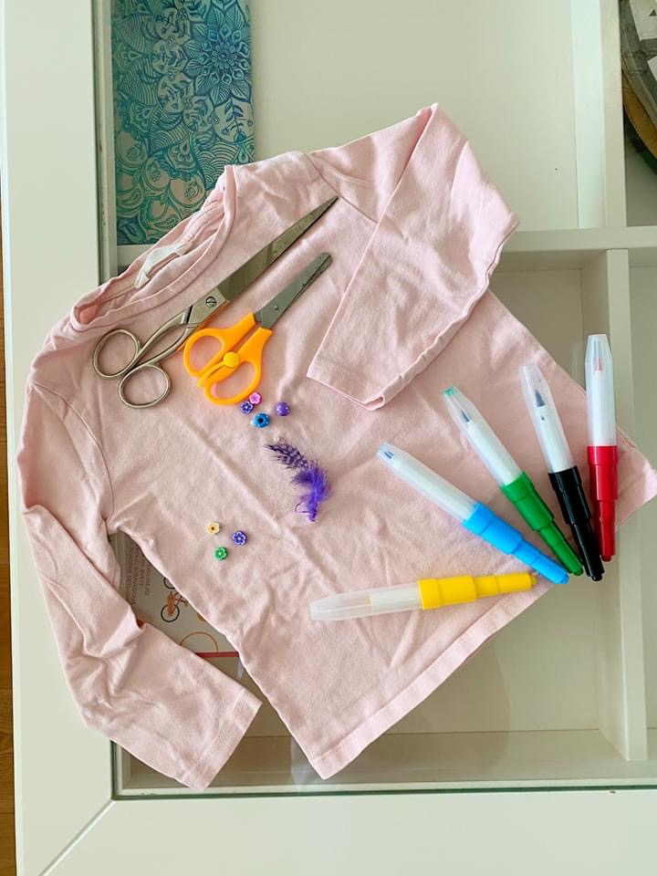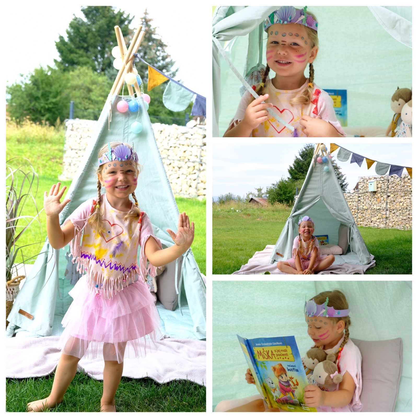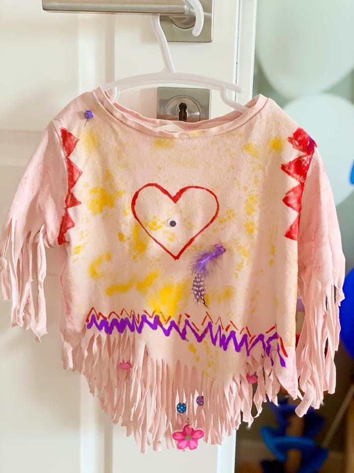 Indiánka ☀️💕 Dnes som ju naučila, že aj staré veci vedia super poslúžiť 🙏🏻 Zo starého nátelníka, ktorý jej už bol malý, sme vyrobili indiánske tričko. Stačili nožnice, fixky a korálky. Umývateľné voskovky poslúžili, ako farby na tvár a vualáaaaaa malá Indiánka je na svete 😉