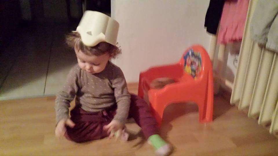 Tak u nas aktualne uz par tyzdnov sa snazime skusat nocnik. A momentalne ma mala velku srandu ak vyberaciu cast nadstavi ako klobuk a nepada jej z hlavy. 😉😂 ...a ak sa jej podari troska sa aj poprechadzat tak to je radosti...ale naopak ked spadne, tak ine nervy. 😈😇 No a doteraz sme sa s odplienkovavanim dalej ani nepohli...👶😇