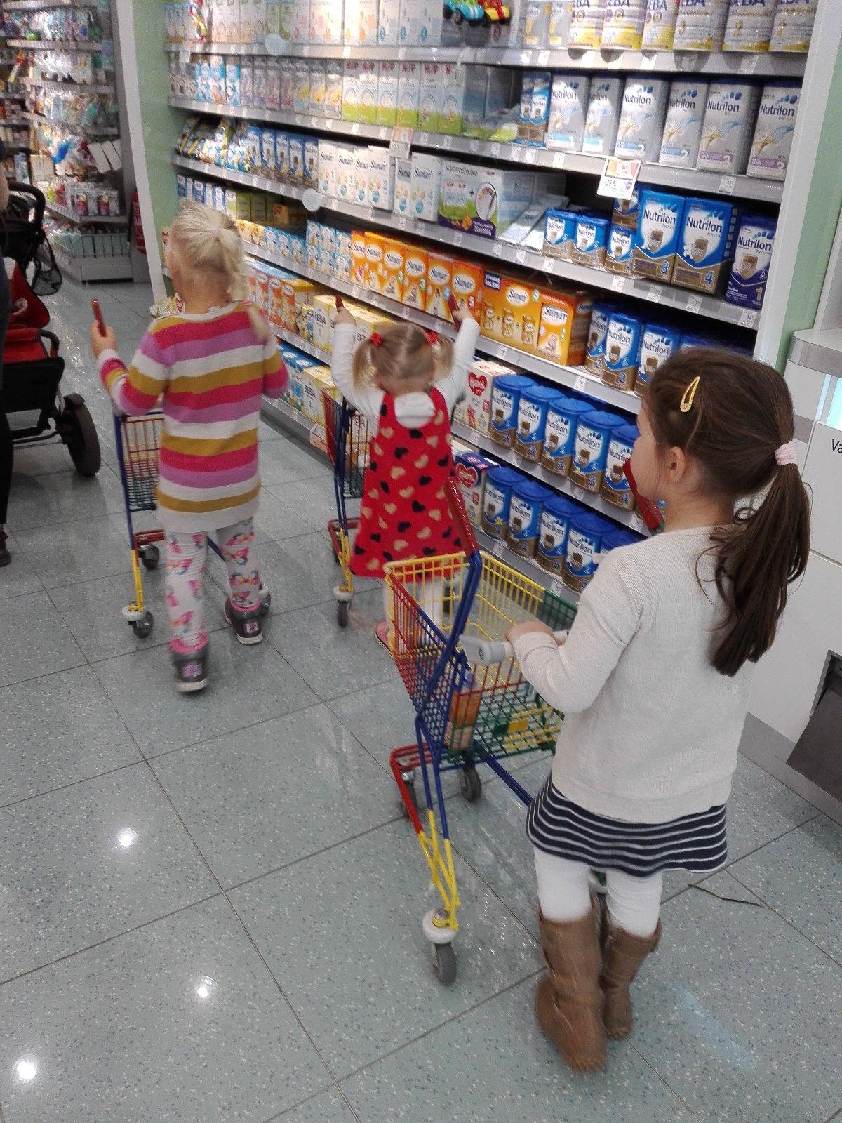 U nás je to na 3 spôsoby: najstaršia berie veľký vozík, lebo vie, že toho bude veľa 😇 , mladšia ide so "svojim" detským vozíčkom a spolu mieria k stojanom so sponkami, náušnicami a vlasovými doplnkami 🛒👧👧 potom prejdu k lakom na nechty 😎 Najmladší sedí vo svojom kočíku a ozve sa až pri regáli s príkrmami "jeeeeeeej" 👶🥕🍏 Je to proste malý papajko ❤