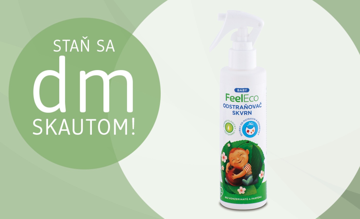 Pozor, pozor!😊 Dnes hľadá dm 250 dm skautov, ktorí by radi vyskúšali ☝️novinku tekutý odstraňovač škvŕn Feel Eco Baby👶🌿, ktorý u nás nájdete exkluzívne online.💚 Je vhodný pre pranie detskej bielizne, ako aj bielizne pre osoby s citlivou pokožkou. Prihlásiť sa a dozvedieť sa viac môžete tu👉 www.mojadm.sk/dmskaut-feeleco-baby . Na prihlásenie máte 24 hodín!😉
