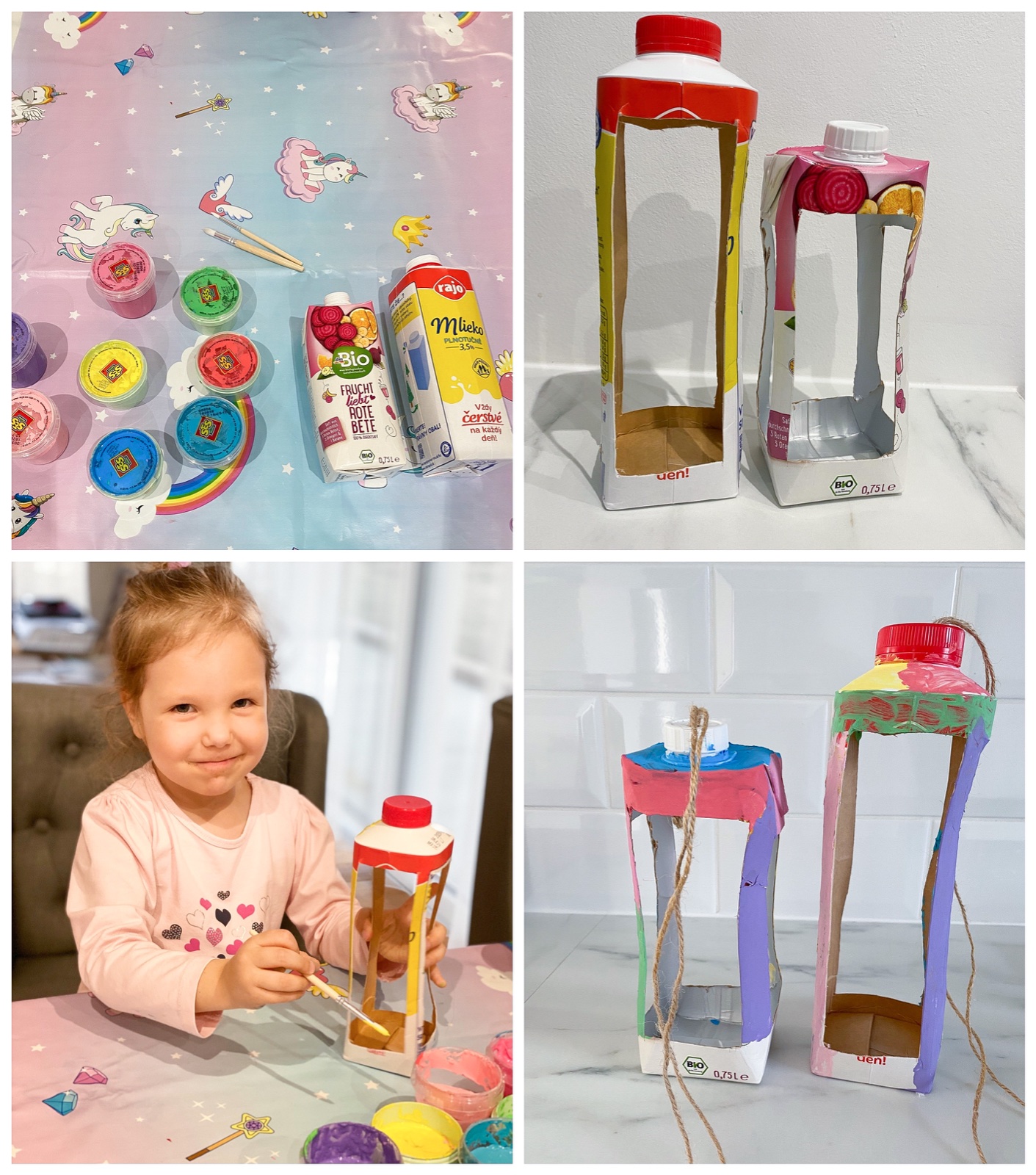 Recyklujeme obaly na mlieko a džúsy. Vytvorili sme kŕmidlá pre vtáky a vyvesili na stromy 🙂#tip #kreativnetvorenie #dm