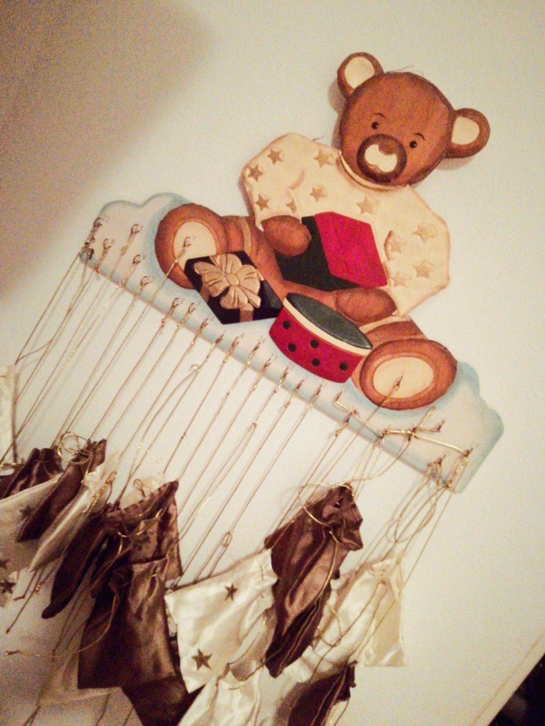 My sme ešte nedávali adventný kalendár, ale tento rok starká ušila z vianočných látok vrecúška, ktoré sme naplnili drobnosťami. Prichytila som ich štipčekmi o povraz. Plánujeme ho zavesiť dcérke na poschodovú posteľ do izbičky. Len dúfam, že ho po tajomky nevyje celý naraz 🙈