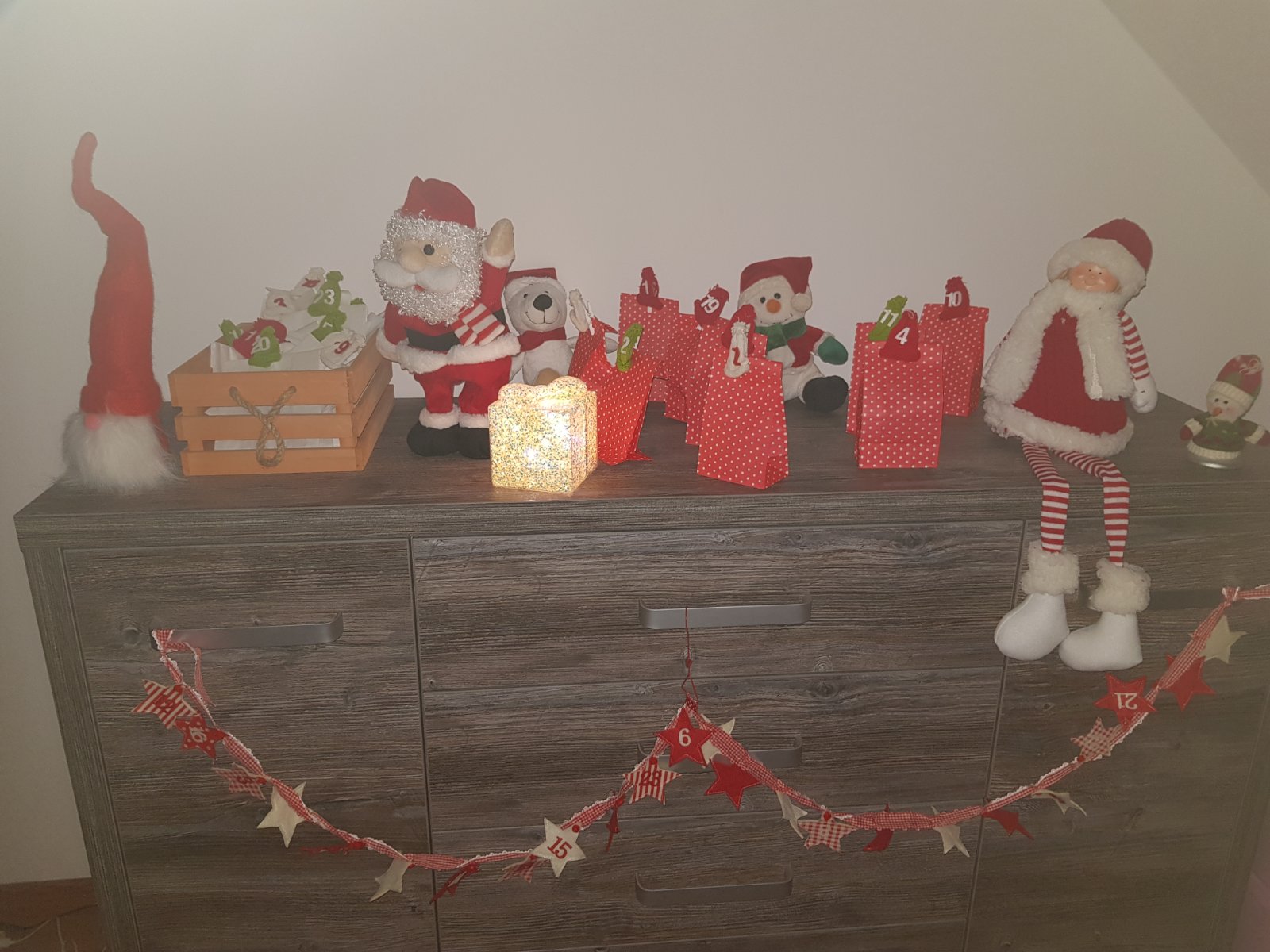 Ja tento rok po prvýkrát pripravujem pre svojho drobca adventný kalendár, nakoľko doteraz boli primalý, aby chápal, o čo ide. Kúpila som krásny závesný adventný kalendár tvorený z červených čižmičiek trojakého druhu, k tomu zelenú girlandu na ozdobenie a nakúpila kvantum sladkých drobností, ktoré naplnia spomínané čižmičky. Zajtra budeme so synčekom vyzdobovať bytík na advent, tak uvidíme, aký bude mať kalendár úspech🙂