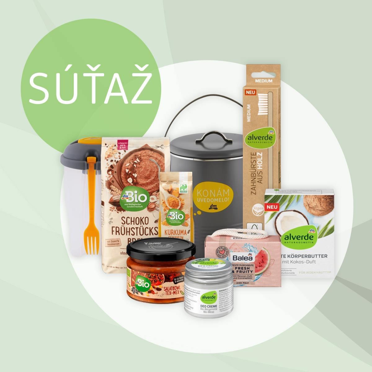 SÚŤAŽ‼ o 15 balíčkov bio / eko produktov zn. alverde NATURKOSMETIK, dmBio a Balea.💚 Vyhrať môžete užitočnú nádobu na bio odpad a praktickú misku, vďaka ktorej si môžete svoje obľúbené ovocie či šalát vziať všade so sebou.