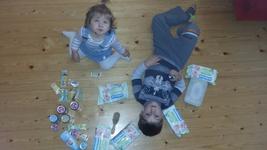 Na foto je nieco malo z toho vsetkeho co pouzivame, okrem toho este napr vyzivu, keksiky, zabranu na zasuvky, podbradniky... 👍😄