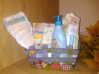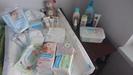 Tak ja foto nemam, ale kupujeme vlhcene obrusky, umyvaci gel,tycky do usiek, na zobkanie susienky, prikrmy sklenene a ovocne tasticky. Toto u nas nesmie chybat pre krpca :-*