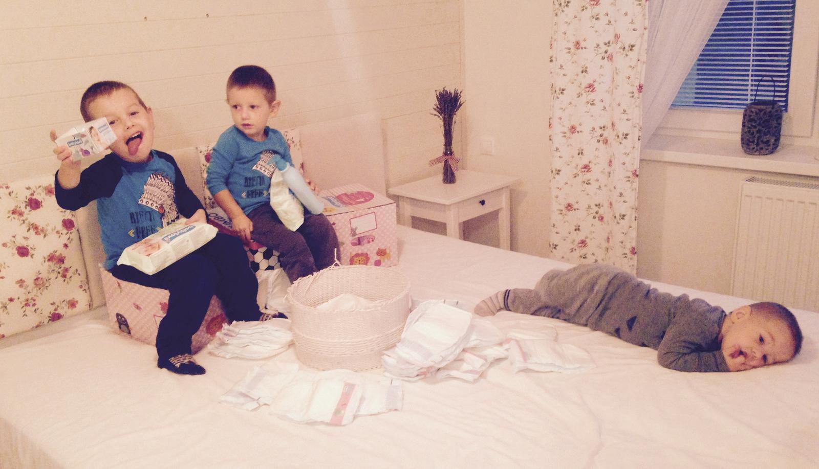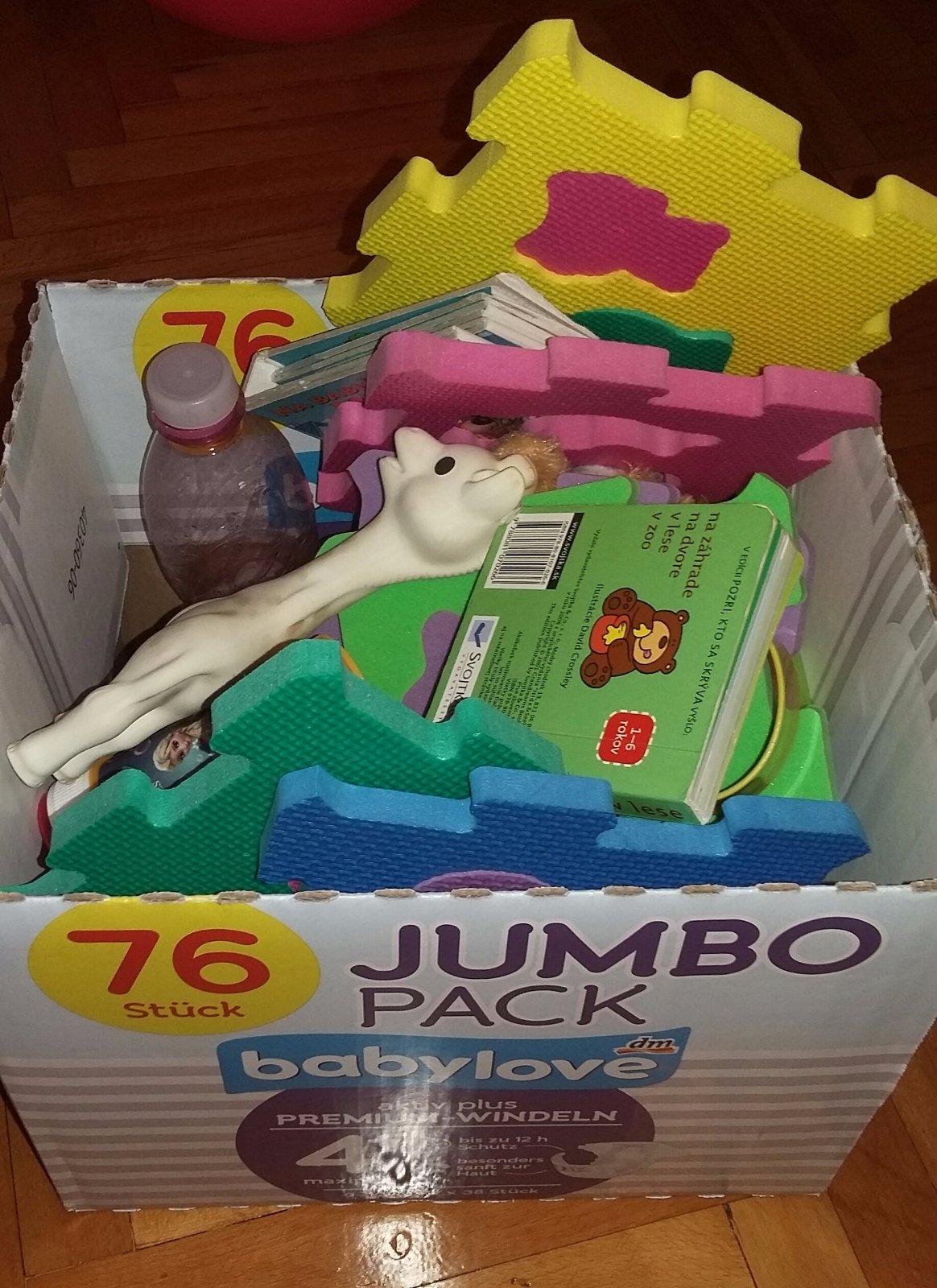 Na foto je nieco malo z toho vsetkeho co pouzivame, okrem toho este napr vyzivu, keksiky, zabranu na zasuvky, podbradniky... 👍😄