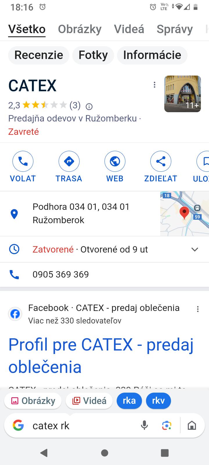 V Ružomberku ešte CATEX oproti tržnici...manžel bol spokojný, majiteľ vie poradiť, ochotný