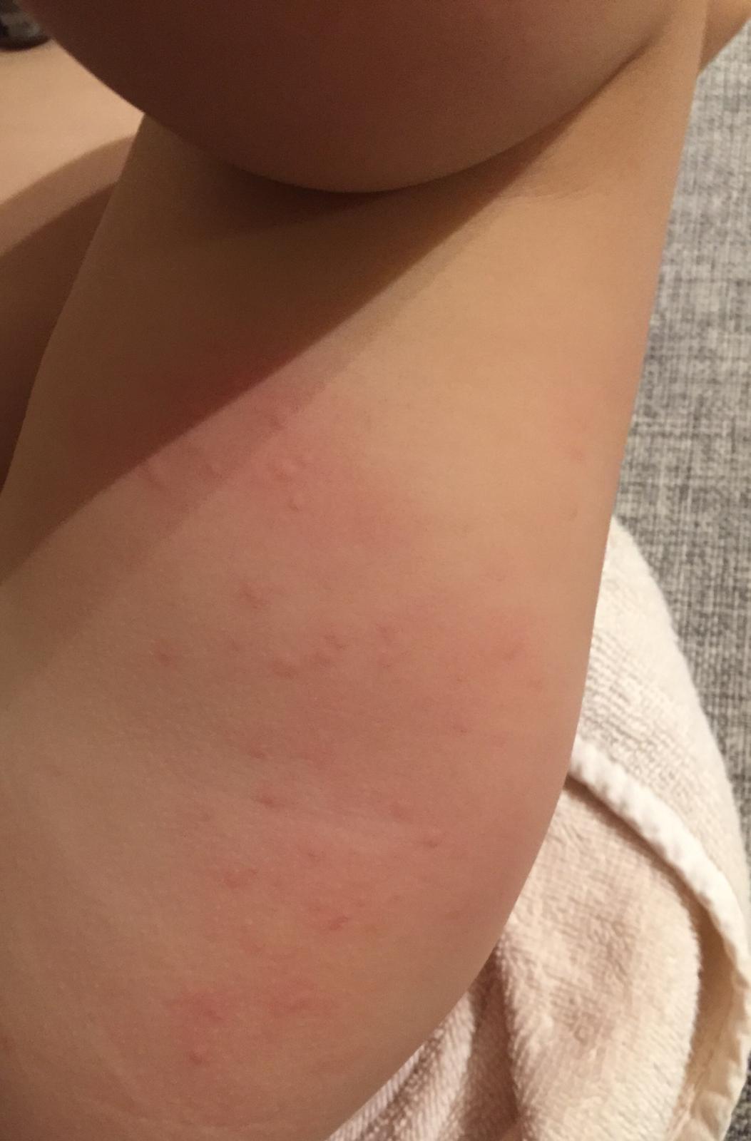 To je žihlavka - alergická reakcia. Môže byť na hocičo - na jedlo, kozmetiku, lieky .... Treba dať fenistil kvapky alebo nejaké iné antihistaminikum. Môže sa posúvať po tele, miznúť a znova sa objaviť. Môže to byť reakcia na očkovanie, ale aj nemusí. Moja dcéra väčšinou reaguje pri oslabenej imunite. Takže aj u vás je teraz oslabená imunita po očkovaní, ale reakcia môže byť naozaj na hocičo.