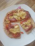cottage zmiešame s múkou, bielkom a soľou. cesto natenko rozotrieme na plech s papierom na pečenie a pečieme pri 200C cca. 15 minút. obložíme a pečieme ešte ďalších 10 minút.