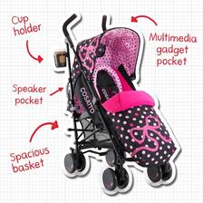 Praktický a komfortný športový kočík COSATTO naplní očakávania každej mamičky. Ľahkou manipuláciou má schopnosť uspokojiť najnáročnejšiu požiadavku na vozenie dieťatka. Ak túžite byť originálny a iní, tento kočík si s istotou obľúbite. • hliníková konštrukcia • ľahké skladanie kočíka • otočné predné kolieska s možnosťou aretácie • polohovanie chrbátika až do ľahu (3 polohy) • polohovanie opierky nožičiek Súčasťou kočíka je: • polohovacia strieška • komfortný fusak • podložka pod hlavičku dieťaťa • pláštenka na kočík Rozmery: • Zložený kočík: 106x28 x34cm Hmotnosť: 7kg