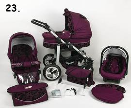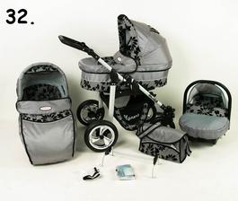 V zostave kočíka sa nachádza vanička (s nánožníkom), športová verzia (s nánožníkom), autosedačka (s nánožníkom) Konštrukcia je vyrobená z hliníka, v cene sú plastové kolieska, možnosť zmeny na gumené nafukovacie kolieska.