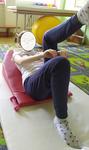 POloha ako predtym, Dvihame postupne nohy a popod nohu si podavame cinku. Neskor mozeme aj dvihat hlavu.