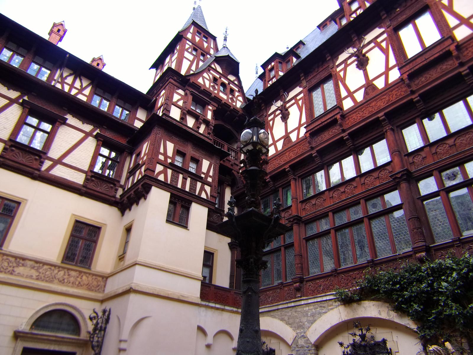 Na prvej fotke uz vidno pohorie Bucegi, kde sme mierili po serpentinach. V horskom mestecku Sinaia, kde vedla seba najdete luxusny hotel a chajdu s hydinou, sa nachadza kralovsky zamok Peles. Sprievodkyna nam slubila, ze uvidime nieco, co sme este nevideli, a neklamala. 🙂 Vo viacerych ohladoch. Zamok patri medzi 15 najluxusnejsich zamkov na svete a je jednym z najviac zachovalych v Europe.