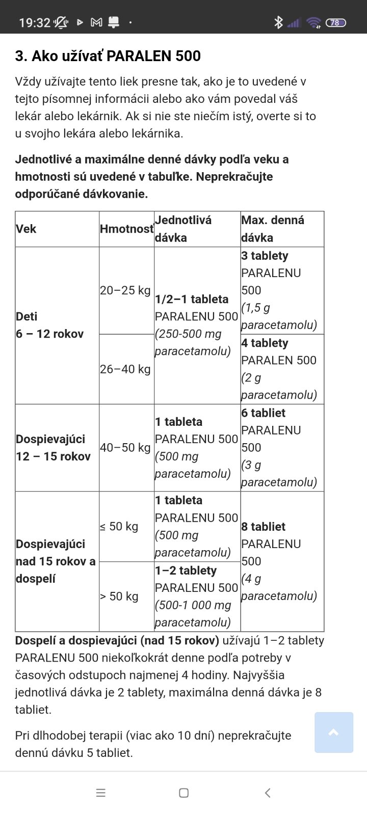 A keď som pýtala v lekárni detský paralen tabletkový, tak povedala, že nemajú, že len 500 či chcem. Vravím, že to máme. Čiže možeš poliť v pohode. Dala by som množstvo podľa príbalového letáka. Moj 6r napr nemá 20kg