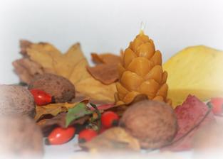Vianočné ozdoby, sviečky, svietniky z pravého včelieho vosku.
