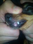 @adrishiatko No moze byt aj od zubu, takto z fotky to vazne nejde povedat. Mohol by to byt aj nador, ale ten nevyraste cez noc. Na bradavicu to nevyzera a u takto mladych psikov nevznikaju. Urcite to nemackaj. Ja bych tipla ze bud sa jej tam daco zapichlo (osina, alebo cokolvek ine) a opouzdrilo sa to- to mackanim nevytlacis, mozes jej iba prihorsit.Male pichlave predmety maju u psov tendenci putovat, takze mozu vniknut inym miestom a inde sa zapuzdrit a urobit absces- musi sa to odborne chirurgicky narezat a vycistit.Pripadne to moze byt po ustipnuti. Tiez sis nemusela vsimnut- napriklad moji stale chytaju vsetko co lieta. Zkus jej davat iba studeny obklad (ak sa ti podari)) a uvidis. Pokud je to po ustipnuti malo by to ustupit aj same. Pokial je to absces tak sa to bude horsit. Ked sa to bude zvacsovat alebo sa jej zhorsi zdravotny stav tak chod k veterinarovi.. A daj vedet ako ste dopadli ;)
