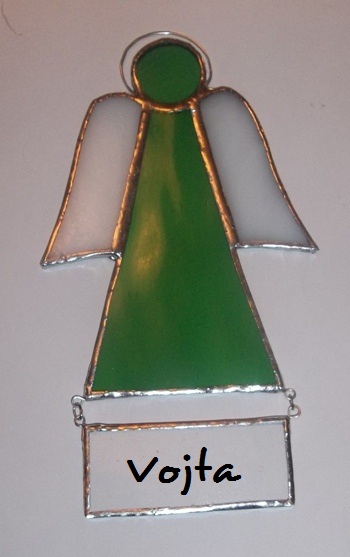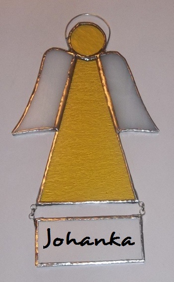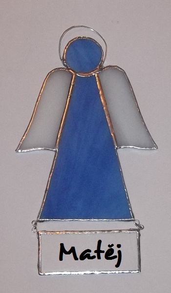 Talizman - sklenený vitrážový anjelik Aitu s krstným menom Vášho bábätka!