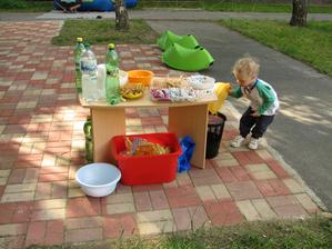 Bludisko Namaľované na betóne a dieťa samé alebo s navigáciou prechádza cestičkou. Ideálne by bolo, keby dieťa malo masku – čiapku zvieraciu na hlavičke a hľadalo cestičku k jedlu. Jednoduchý plánik nájdem a väčšie by mali cestičku od do s navigáciou.