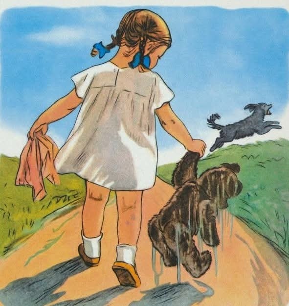 Šijem, šijem pomaličky... Kniha môjho detstva. Vtedy som si myslela, že šitie je také jednoduché, ako na obrázku. Aj som to tak skúšala, v tom veku, bez niekoho , kto by ma viedol, s jasným výsledkom 🙂 . No napriek tomu som to nevzdala a je to, v rôznych podobách, moje celoživotné hobby. Pred rokmi ju vydali s novými ilustráciami. No potom som ju znovu videla s pôvodnými.