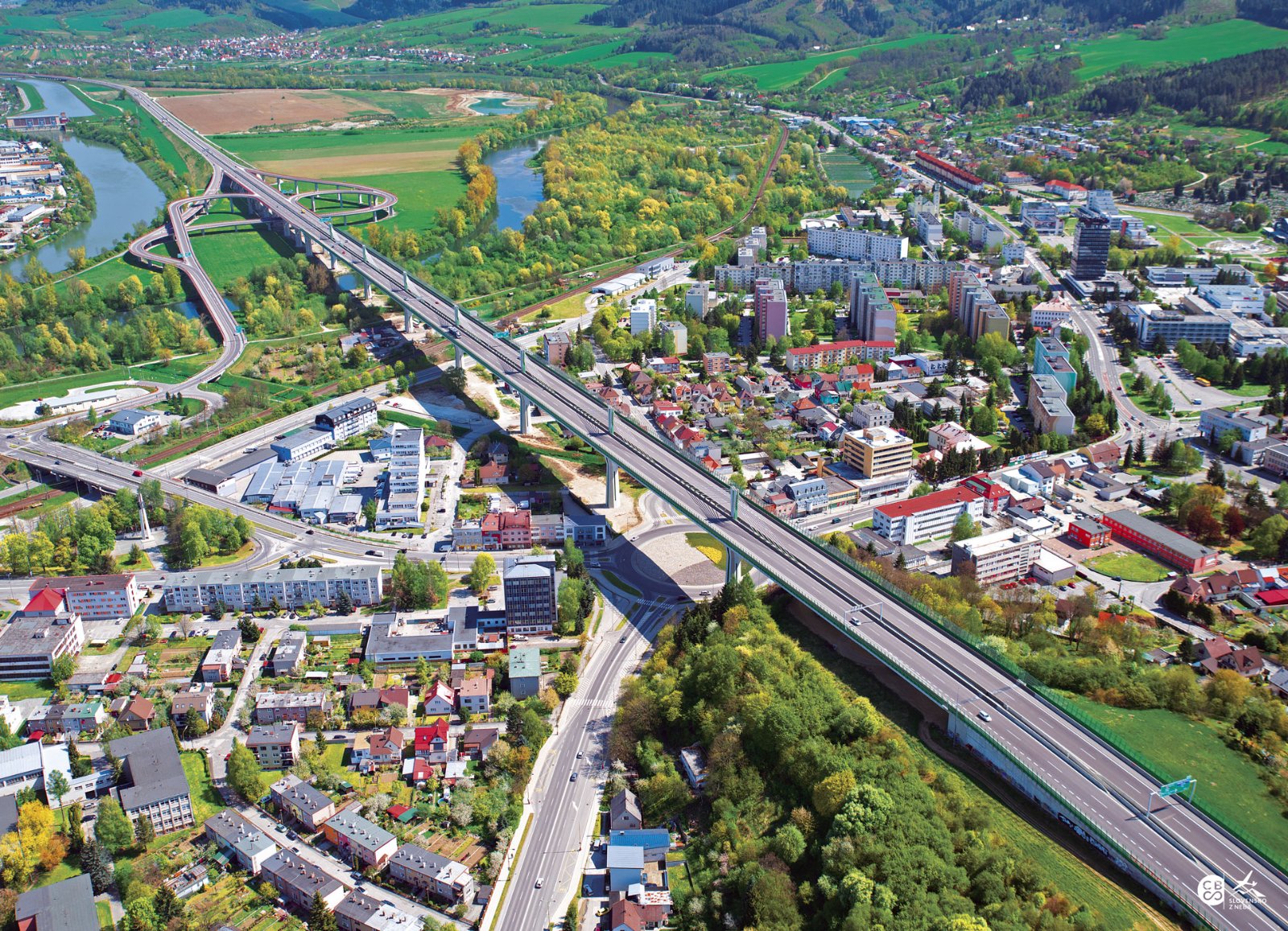 Nad mestom sa totiž týči ikonická estakáda diaľnice D1 Považská Bystrica estakáda, ktorá je dlhá viac ako 1 kilometer a vedie priamo ponad rieku Váh aj mestskú zástavbu.