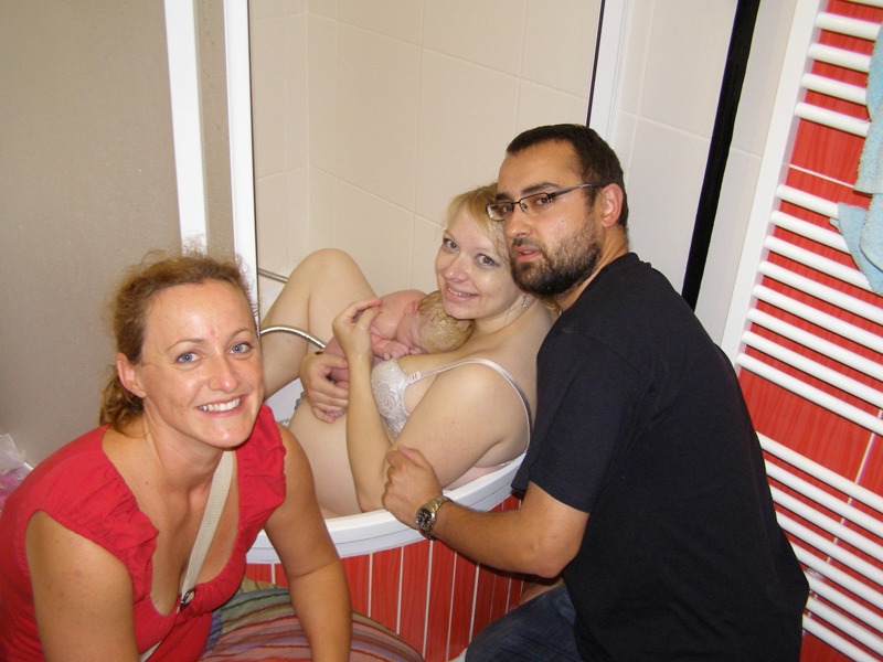 Nemusela som ani tlačiť - ako ani pri hlavičke...pliecka sa drali von - len som malú pridržala za hlavičku, potom mám sekundové okno, neviem, či som ju vybrala alebo vykĺzla sama do vane a ostiaľ som ju dvihla, viem len ako som ju už dvíhala pod ramienka a podržala oproti sebe vo výške očí - bola modrá - a do mňa ďalší veľký strach, že čo ak sa nenadýchne, pritisla som si ju poriadne k sebe medzi prsia pohladila ju po chrbátiku, začala kuckať a hneď na to aj plakať a za pár sekúnd bola ružovučká - ale tých pár sekúnd kým začala plakať bolo neznesiteľných, prišli mi ako večnosť, pritom to bolo hneď...-to bol ďalší veľký strach. Inak by to bolo celé krásne, aj napriek takej intenzívnej bolesti. Manžel akurát dovolal so záchrankou keď mi napadlo, že aký je čas, kedy sa malá Nataška narodila...pozrel sa, bolo 13:14 – takže sme určili čas narodenia na 13:12 – keďže sa narodila počas telefonátu ;)