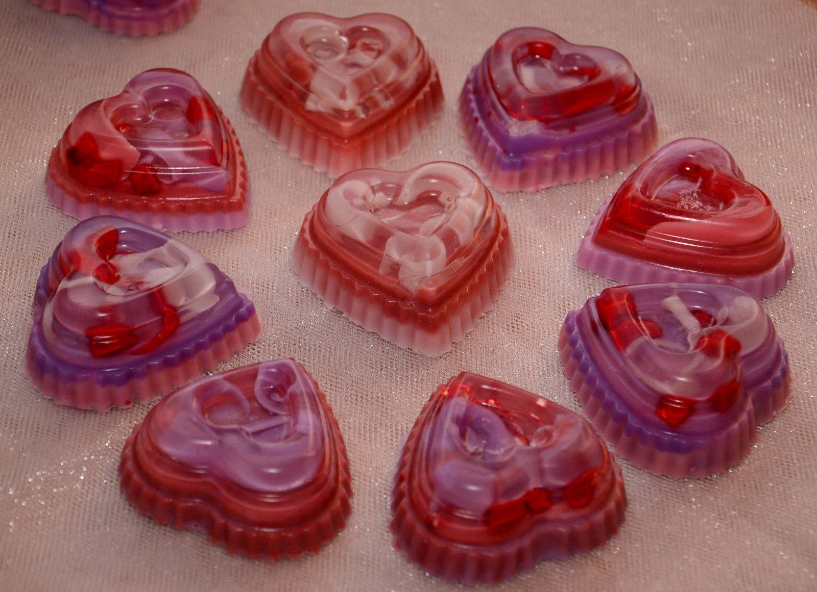 Valentínske mydielka -levanduľa-ružové drevo a višňa v marcipáne/vanilka
