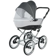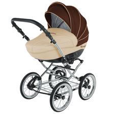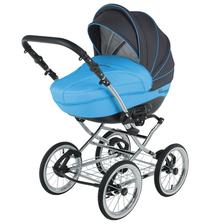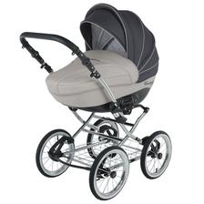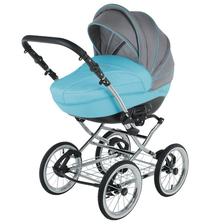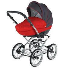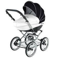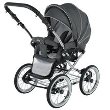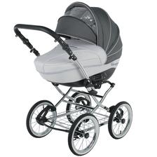 klasická konstrukce, odpružení všech kol, nafukovací ložisková kola, otočná sportovní verze, nastavitelná rukojeť potažená eko kůží, korbička a sportovní verze, taška na rukojeť, moskytiéra, pláštěnka a prostorný nákupní koš, autosedačka Carlo, Korba: inovativně řešená korba, prodloužení stříšky, nastavitelné opěradlo, měkká matrace + moskytiéra, letní odvětrávání boudičky, regulace opěrky Sportovní verze: otočná sedačka po i proti směru jízdy, polohování zad i nožiček až do lehu, 5-ti bodové bezpečnostní pásy s polstrováním, odnímatelné madlo před dítětem, sklápěcí boudička s odvětráváním.