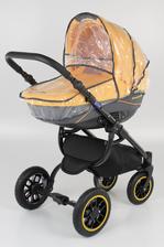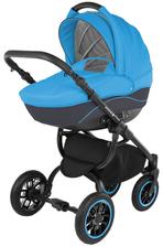 černá, lehká ALU konstrukce, lemování kol v barvě kočárku, odpružení všech kol, nafukovací ložisková otočná kola s blokací, otočná sportovní verze, nastavitelná rukojeť potažená eko kůží, korbička a sportovní verze, taška na rukojeť, moskytiéra, pláštěnka a prostorný nákupní koš, autosedačka Carlo, nebo adaptéry na autosedačky Maxi Cosi